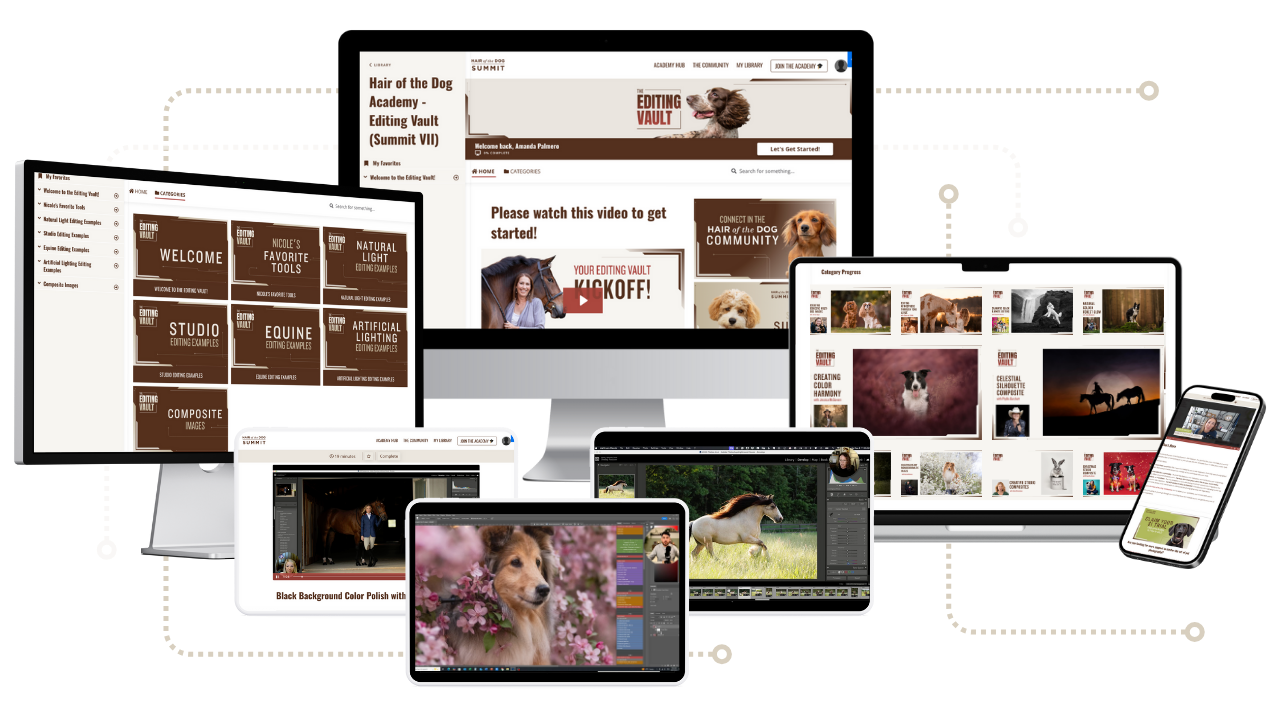 Whether you're brand new or experienced, you'll have repeatable editing frameworks you can use again and again — for any session, in any lighting, with any dog or horse.